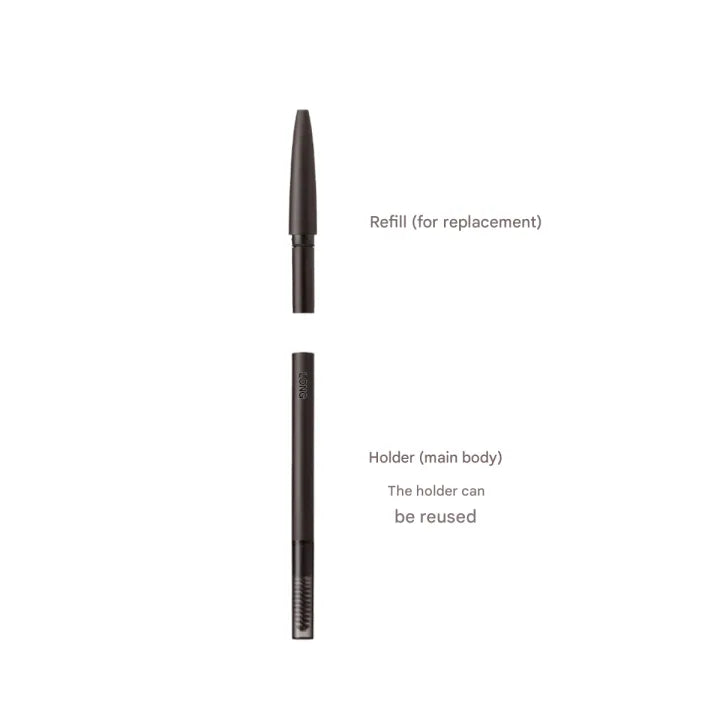 It contains eyebrow treatment ingredients, so you can apply makeup while moisturizing your eyebrows. It is a refill type that allows you to replace the core and use the holder repeatedly, making it economical. The holder comes with a screw brush that is convenient for adjusting the flow of hair and blurring drawn lines.